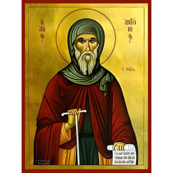 Εικόνα Ορθοδοξίας με περίγραμμα χρυσό σε ξύλο Φλαμουρίας με βάση Εικόνα ΑΓΙΟΣ ΑΝΤΩΝΙΟΣ, Ο ΜΕΓΑΣ Χειροποίητη Ελληνορθόδοξη εικόνα του Ιησού Χριστού, Κρεμαστή πλάκα βυζαντινής τέχνης, χριστιανική τέχνη Διάσταση 15×11 cm (5,9×4,3 ίντσες) INTRAEK-337757865091