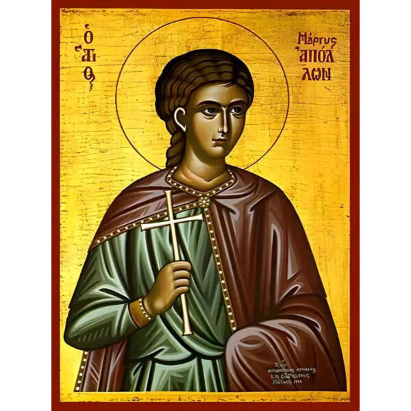 Εικόνα Ορθοδοξίας με περίγραμμα χρυσό σε ξύλο Φλαμουρίας με βάση Εικόνα ΑΓΙΟΣ ΑΠΟΛΛΩΝ, Ο ΕΞ’ ΑΙΓΥΠΤΟΥ Χειροποίητη Ελληνορθόδοξη εικόνα του Ιησού Χριστού, Κρεμαστή πλάκα βυζαντινής τέχνης, χριστιανική τέχνη Διάσταση 15×11 cm (5,9×4,3 ίντσες) INTRAEK-337757865088
