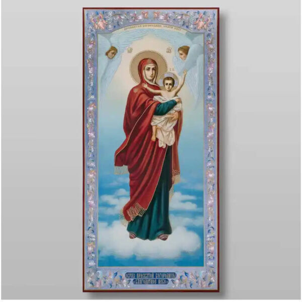 Εικόνα Ορθοδοξίας με περίγραμμα χρυσό σε ξύλο Φλαμουρίας με βάση The Mother of God Blessed Heaven Χειροποίητη Ελληνορθόδοξη , Κρεμαστή πλάκα βυζαντινής τέχνης, χριστιανική τέχνη Διάσταση 50×40 cm (19,7 x 15,8 ίντσες) INTRAEK-65432907