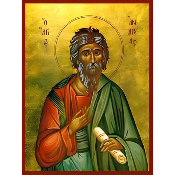 Εικόνα Ορθοδοξίας με περίγραμμα χρυσό σε ξύλο Φλαμουρίας με βάση Εικόνα ΑΓΙΟΣ ΑΠΟΣΤΟΛΟΣ ΑΝΔΡΕΑΣ, Ο ΠΡΩΤΟΚΛΗΤΟΣ Χειροποίητη Ελληνορθόδοξη εικόνα του Ιησού Χριστού, Κρεμαστή πλάκα βυζαντινής τέχνης, χριστιανική τέχνη Διάσταση 15×11 cm (5,9×4,3 ίντσες) INTRAEK-337757865086