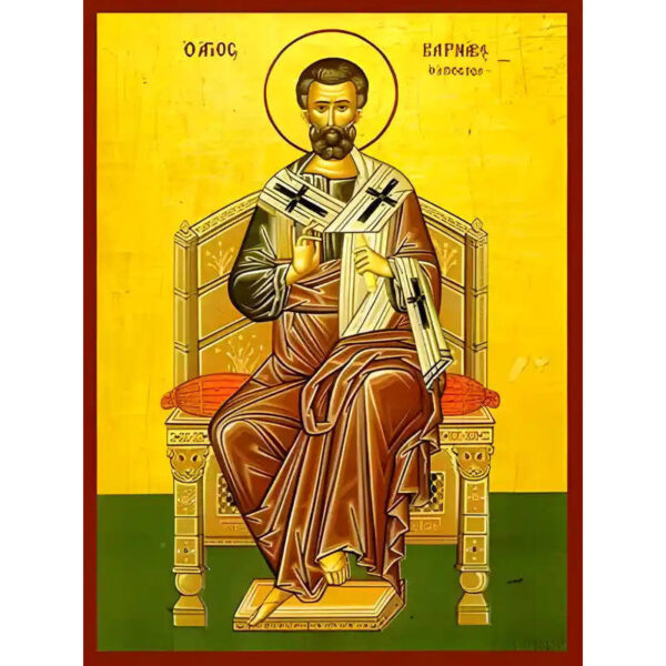Εικόνα Ορθοδοξίας με περίγραμμα χρυσό σε ξύλο Φλαμουρίας με βάση Εικόνα ΑΓΙΟΣ ΑΠΟΣΤΟΛΟΣ ΒΑΡΝΑΒΑΣ, ΕΝΘΡΟΝΟΣ Χειροποίητη Ελληνορθόδοξη εικόνα του Ιησού Χριστού, Κρεμαστή πλάκα βυζαντινής τέχνης, χριστιανική τέχνη Διάσταση 15×11 cm (5,9×4,3 ίντσες) INTRAEK-337757865076