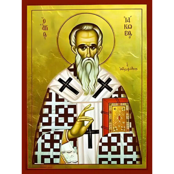 Εικόνα Ορθοδοξίας με περίγραμμα χρυσό σε ξύλο Φλαμουρίας με βάση Εικόνα ΑΓΙΟΣ ΑΠΟΣΤΟΛΟΣ ΙΑΚΩΒΟΣ, Ο ΑΔΕΛΦΟΘΕΟΣ Χειροποίητη Ελληνορθόδοξη εικόνα του Ιησού Χριστού, Κρεμαστή πλάκα βυζαντινής τέχνης, χριστιανική τέχνη Διάσταση 15×11 cm (5,9×4,3 ίντσες) INTRAEK-337757865072