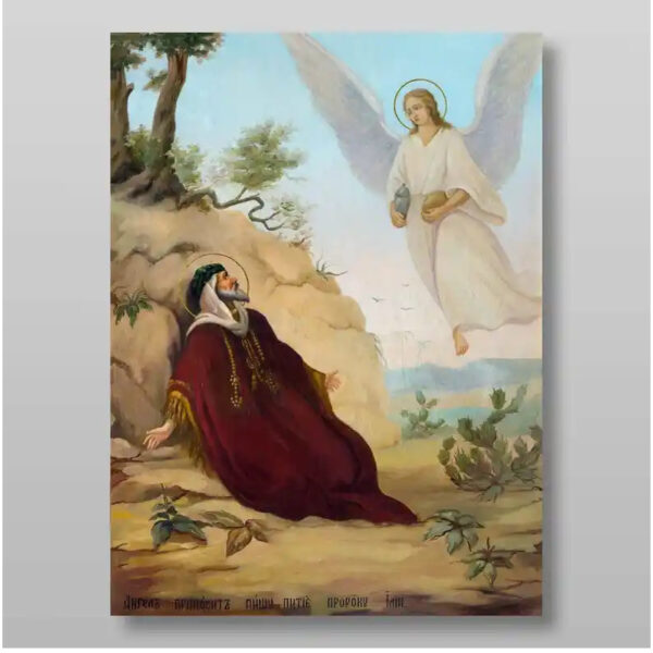 Εικόνα Ορθοδοξίας με περίγραμμα χρυσό σε ξύλο Φλαμουρίας με βάση Ένας άγγελος ταΐζει τον προφήτη Ηλία Χειροποίητη Ελληνορθόδοξη , Κρεμαστή πλάκα βυζαντινής τέχνης, χριστιανική τέχνη Διάσταση 50×40 cm (19,7 x 15,8 ίντσες) INTRAEK-65432890
