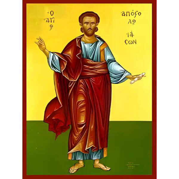 Εικόνα Ορθοδοξίας με περίγραμμα χρυσό σε ξύλο Φλαμουρίας με βάση Εικόνα ΑΓΙΟΣ ΑΠΟΣΤΟΛΟΣ ΙΑΣΩΝ, ΟΛΟΣΩΜΟΣ Χειροποίητη Ελληνορθόδοξη εικόνα του Ιησού Χριστού, Κρεμαστή πλάκα βυζαντινής τέχνης, χριστιανική τέχνη Διάσταση 15×11 cm (5,9×4,3 ίντσες) INTRAEK-337757865066