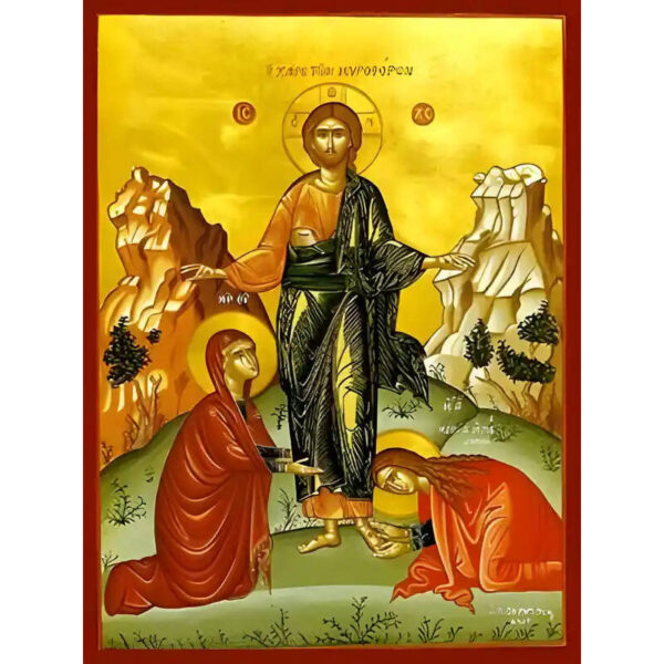 Εικόνα Ορθοδοξίας με περίγραμμα χρυσό σε ξύλο Φλαμουρίας με βάση Εικόνα ΤΟ ΧΑΙΡΕ ΤΩΝ ΜΥΡΟΦΟΡΩΝ Χειροποίητη Ελληνορθόδοξη εικόνα του Ιησού Χριστού, Κρεμαστή πλάκα βυζαντινής τέχνης, χριστιανική τέχνη Διάσταση 15×11 cm (5,9×4,3 ίντσες) INTRAEK-337757864106