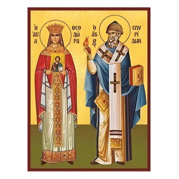 Εικόνα Ορθοδοξίας με περίγραμμα χρυσό σε ξύλο Φλαμουρίας με βάση Εικόνα Άγιοι Θεοδώρα Αυτοκράτειρα του Βυζαντίου και Σπυρίδων Επίσκοπος Τριμυθούντος Χειροποίητη Ελληνορθόδοξη , Κρεμαστή πλάκα βυζαντινής τέχνης, χριστιανική τέχνη Διάσταση 45×35 cm (17,7 x 13,8 ίντσες) INTRAEK-6294670489