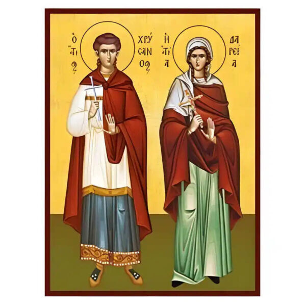 Εικόνα Ορθοδοξίας με περίγραμμα χρυσό σε ξύλο Φλαμουρίας με βάση Εικόνα Άγιοι Χρύσανθος και Δαρεία Χειροποίητη Ελληνορθόδοξη , Κρεμαστή πλάκα βυζαντινής τέχνης, χριστιανική τέχνη Διάσταση 45×35 cm (17,7 x 13,8 ίντσες) INTRAEK-6294670468