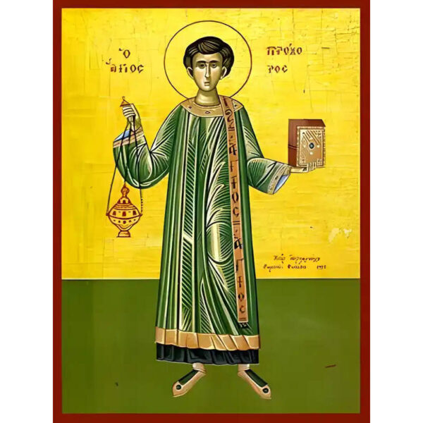 Εικόνα Ορθοδοξίας με περίγραμμα χρυσό σε ξύλο Φλαμουρίας με βάση Εικόνα ΑΓΙΟΣ ΑΠΟΣΤΟΛΟΣ ΠΡΟΧΟΡΟΣ, Ο ΔΙΑΚΟΝΟΣ, ΟΛΟΣΩΜΟΣ Χειροποίητη Ελληνορθόδοξη εικόνα του Ιησού Χριστού, Κρεμαστή πλάκα βυζαντινής τέχνης, χριστιανική τέχνη Διάσταση 15×11 cm (5,9×4,3 ίντσες) INTRAEK-337757865018