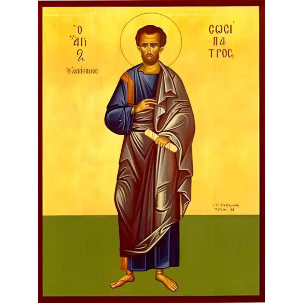Εικόνα Ορθοδοξίας με περίγραμμα χρυσό σε ξύλο Φλαμουρίας με βάση Εικόνα ΑΓΙΟΣ ΑΠΟΣΤΟΛΟΣ ΣΩΣΙΠΑΤΡΟΣ, ΟΛΟΣΩΜΟΣ Χειροποίητη Ελληνορθόδοξη εικόνα του Ιησού Χριστού, Κρεμαστή πλάκα βυζαντινής τέχνης, χριστιανική τέχνη Διάσταση 15×11 cm (5,9×4,3 ίντσες) INTRAEK-337757865013