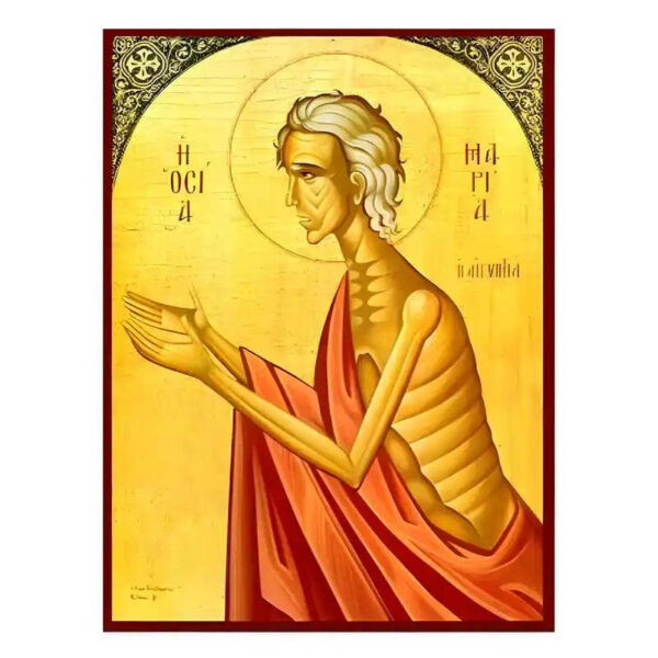 Εικόνα Ορθοδοξίας με περίγραμμα χρυσό σε ξύλο Φλαμουρίας με βάση Εικόνα Οσία Μαρία η Αιγυπτία Χειροποίητη Ελληνορθόδοξη , Κρεμαστή πλάκα βυζαντινής τέχνης, χριστιανική τέχνη Διάσταση 45×35 cm (17,7 x 13,8 ίντσες) INTRAEK-6294670458
