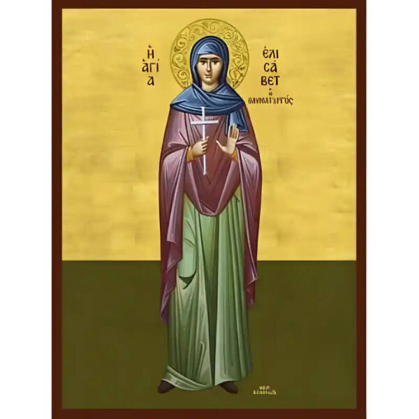 Βασικά Χαρακτηριστικά: – Σχέδιο: Κλασική βυζαντινή εικονογραφία με ζωηρό κόκκινο περίγραμμα – Υλικό: Ξύλο Μασίφ Φλαμουρία υψηλής αντοχής με προστατευτικό βερνίκι για ποιότητα που διαρκεί – Προέλευση: Χειροποίητο στην Ελλάδα – Σκοπός: Ιδανικό για γωνιές προσευχής, εκκλησίες, διακόσμηση σπιτιού ή ως δώρο με νόημα Διαθέσιμα μεγέθη: 10×7 cm (3,9 x 2,8 ίντσες) 15×11 cm (5,9 x 4,3 ίντσες) 21×15 cm (8,3 x 5,9 ίντσες) 26×20 cm (10,2 x 7,9 ίντσες) 40×30 cm (15,8 x 11,8 ίντσες) 45×35 cm (17,7 x 13,8 ίντσες) 50×40 cm (19,7 x 15,8 ίντσες)► Εικόνα της Αγίας Ελισάβετ, ξύλινη. Χειροποίητη ξύλινη εικόνα, ειδικής επεξεργασίας σε σκληρό Φλαμουριά Ξύλο Εικόνα Ορθόδοξης τέχνης, σκαλισμένη ή τυπωμένη σε ξύλο φλαμουριάς υψηλής ποιότητας. Η φυσική απαλότητα και ομοιομορφία του ξύλου τονίζει κάθε λεπτομέρεια του εικονίσματος, αναδεικνύοντας τη βαθιά πνευματικότητα και την ιερότητα της παράδοσης. Ιδανική για οικιακό εικονοστάσι, δώρο βάπτισης, γάμου ή αφιέρωμα σε ναό. Το ξύλο έχει υποστεί ειδική επεξεργασία για αντοχή και αισθητική αρμονία, κρατώντας ζωντανά τα χρώματα και τη μορφή του προσώπου του Αγίου. με ανεξίτηλα χρώματα σε λεπτό καμβά.