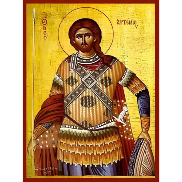 Εικόνα Ορθοδοξίας με περίγραμμα χρυσό σε ξύλο Φλαμουρίας με βάση Εικόνα ΑΓΙΟΣ ΑΡΤΕΜΙΟΣ, Ο ΜΕΓΑΛΟΜΑΡΤΥΣ, ΑΝΤΙΟΧΕΙΑΣ Χειροποίητη Ελληνορθόδοξη εικόνα του Ιησού Χριστού, Κρεμαστή πλάκα βυζαντινής τέχνης, χριστιανική τέχνη Διάσταση 15×11 cm (5,9×4,3 ίντσες) INTRAEK-337757865000