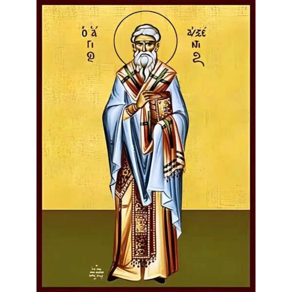 Εικόνα Ορθοδοξίας με περίγραμμα χρυσό σε ξύλο Φλαμουρίας με βάση Εικόνα ΑΓΙΟΣ ΑΥΞΕΝΤΙΟΣ, ΙΕΡΟΜΑΡΤΥΣ ΣΕΒΑΣΤΕΙΑΣ, ΟΛΟΣΩΜΟΣ Χειροποίητη Ελληνορθόδοξη εικόνα του Ιησού Χριστού, Κρεμαστή πλάκα βυζαντινής τέχνης, χριστιανική τέχνη Διάσταση 15×11 cm (5,9×4,3 ίντσες) INTRAEK-337757864995