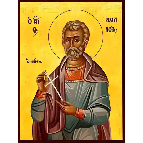 Εικόνα Ορθοδοξίας με περίγραμμα χρυσό σε ξύλο Φλαμουρίας με βάση Εικόνα ΑΓΙΟΣ ΑΧΙΛΛΕΑΣ, ΘΡΑΚΗΣ, ΜΑΡΤΥΣ Χειροποίητη Ελληνορθόδοξη εικόνα του Ιησού Χριστού, Κρεμαστή πλάκα βυζαντινής τέχνης, χριστιανική τέχνη Διάσταση 15×11 cm (5,9×4,3 ίντσες) INTRAEK-337757864994