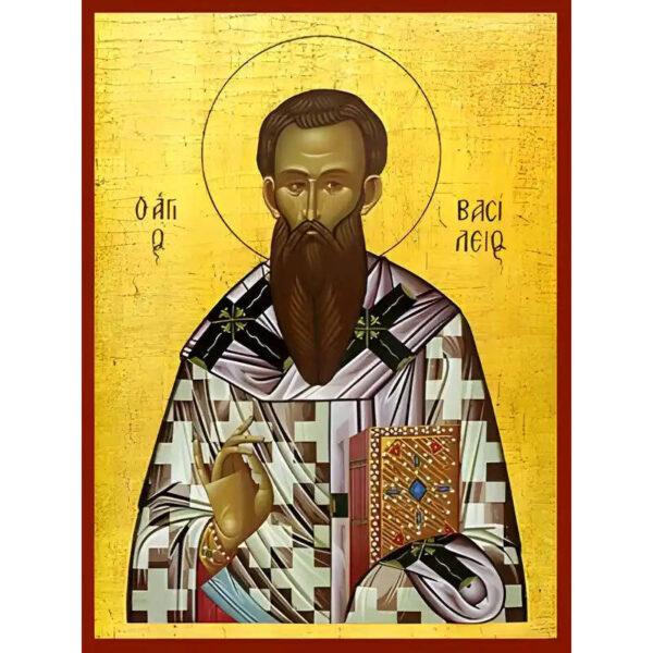 Εικόνα Ορθοδοξίας με περίγραμμα χρυσό σε ξύλο Φλαμουρίας με βάση Εικόνα ΑΓΙΟΣ ΒΑΣΙΛΕΙΟΣ Ο ΜΕΓΑΣ, ΑΡΧΙΕΠΙΣΚΟΠΟΣ ΚΑΙΣΑΡΕΙΑΣ, ΚΑΠΠΑΔΟΚΙΑ Χειροποίητη Ελληνορθόδοξη εικόνα του Ιησού Χριστού, Κρεμαστή πλάκα βυζαντινής τέχνης, χριστιανική τέχνη Διάσταση 15×11 cm (5,9×4,3 ίντσες) INTRAEK-337757864990