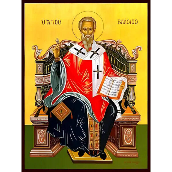 Εικόνα Ορθοδοξίας με περίγραμμα χρυσό σε ξύλο Φλαμουρίας με βάση Εικόνα ΑΓΙΟΣ ΒΛΑΣΙΟΣ, ΙΕΡΟΜΑΡΤΥΣ, ΕΠΙΣΚΟΠΟΣ ΣΕΒΑΣΤΕΙΑΣ, ΕΝΘΡΟΝΟΣ Χειροποίητη Ελληνορθόδοξη εικόνα του Ιησού Χριστού, Κρεμαστή πλάκα βυζαντινής τέχνης, χριστιανική τέχνη Διάσταση 15×11 cm (5,9×4,3 ίντσες) INTRAEK-337757864974