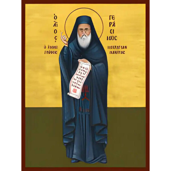 Εικόνα Ορθοδοξίας με περίγραμμα χρυσό σε ξύλο Φλαμουρίας με βάση Εικόνα ΑΓΙΟΣ ΓΕΡΑΣΙΜΟΣ ΜΙΚΡΑΓΙΑΝΝΑΝΙΤΗΣ, Ο ΥΜΝΟΓΡΑΦΟΣ, ΟΛΟΣΩΜΟΣ Χειροποίητη Ελληνορθόδοξη εικόνα του Ιησού Χριστού, Κρεμαστή πλάκα βυζαντινής τέχνης, χριστιανική τέχνη Διάσταση 15×11 cm (5,9×4,3 ίντσες) INTRAEK-337757864971