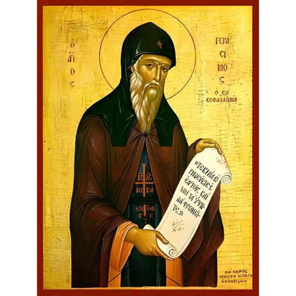 Εικόνα Ορθοδοξίας με περίγραμμα χρυσό σε ξύλο Φλαμουρίας με βάση Εικόνα ΑΓΙΟΣ ΓΕΡΑΣΙΜΟΣ Ο ΕΚ ΚΕΦΑΛΛΗΝΙΑΣ Χειροποίητη Ελληνορθόδοξη εικόνα του Ιησού Χριστού, Κρεμαστή πλάκα βυζαντινής τέχνης, χριστιανική τέχνη Διάσταση 15×11 cm (5,9×4,3 ίντσες) INTRAEK-337757864969