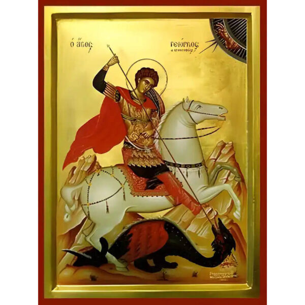 Εικόνα Ορθοδοξίας με περίγραμμα χρυσό σε ξύλο Φλαμουρίας με βάση Εικόνα ΑΓΙΟΣ ΓΕΩΡΓΙΟΣ Ο ΤΡΟΠΑΙΟΦΟΡΟΣ, ΕΦΙΠΠΟΣ Χειροποίητη Ελληνορθόδοξη εικόνα του Ιησού Χριστού, Κρεμαστή πλάκα βυζαντινής τέχνης, χριστιανική τέχνη Διάσταση 15×11 cm (5,9×4,3 ίντσες) INTRAEK-337757864955