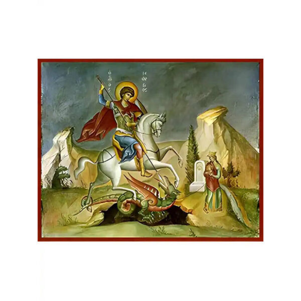 Εικόνα Ορθοδοξίας με περίγραμμα χρυσό σε ξύλο Φλαμουρίας με βάση Εικόνα ΑΓΙΟΣ ΓΕΩΡΓΙΟΣ Ο ΤΡΟΠΑΙΟΦΟΡΟΣ, ΕΦΙΠΠΟΣ Χειροποίητη Ελληνορθόδοξη εικόνα του Ιησού Χριστού, Κρεμαστή πλάκα βυζαντινής τέχνης, χριστιανική τέχνη Διάσταση 15×11 cm (5,9×4,3 ίντσες) INTRAEK-337757864948