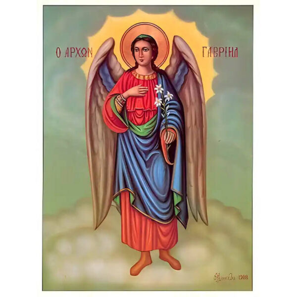 Εικόνα Ορθοδοξίας με περίγραμμα χρυσό σε ξύλο Φλαμουρίας με βάση Εικόνα ΑΡΧΩΝ ΓΑΒΡΙΗΛ, ΟΛΟΣΩΜΟΣ Χειροποίητη Ελληνορθόδοξη εικόνα του Ιησού Χριστού, Κρεμαστή πλάκα βυζαντινής τέχνης, χριστιανική τέχνη Διάσταση 15×11 cm (5,9×4,3 ίντσες) INTRAEK-337757863892