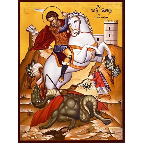Εικόνα Ορθοδοξίας με περίγραμμα χρυσό σε ξύλο Φλαμουρίας με βάση Εικόνα ΑΓΙΟΣ ΓΕΩΡΓΙΟΣ Ο ΤΡΟΠΑΙΟΦΟΡΟΣ, ΕΦΙΠΠΟΣ Χειροποίητη Ελληνορθόδοξη εικόνα του Ιησού Χριστού, Κρεμαστή πλάκα βυζαντινής τέχνης, χριστιανική τέχνη Διάσταση 15×11 cm (5,9×4,3 ίντσες) INTRAEK-337757864945