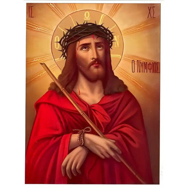 Εικόνα Ορθοδοξίας με περίγραμμα χρυσό σε ξύλο Φλαμουρίας με βάση Εικόνα ΝΥΜΦΙΟΣ Χειροποίητη Ελληνορθόδοξη εικόνα του Ιησού Χριστού, Κρεμαστή πλάκα βυζαντινής τέχνης, χριστιανική τέχνη Διάσταση 15×11 cm (5,9×4,3 ίντσες) INTRAEK-337757863860