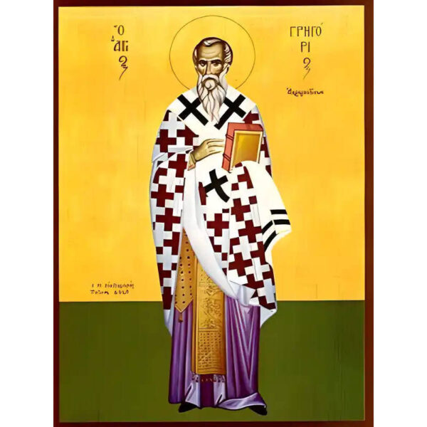 Εικόνα Ορθοδοξίας με περίγραμμα χρυσό σε ξύλο Φλαμουρίας με βάση Εικόνα ΑΓΙΟΣ ΓΡΗΓΟΡΙΟΣ, ΕΠΙΣΚΟΠΟΣ ΑΚΡΑΓΑΝΤΙΝΩΝ, ΟΛΟΣΩΜΟΣ Χειροποίητη Ελληνορθόδοξη εικόνα του Ιησού Χριστού, Κρεμαστή πλάκα βυζαντινής τέχνης, χριστιανική τέχνη Διάσταση 15×11 cm (5,9×4,3 ίντσες) INTRAEK-337757864924