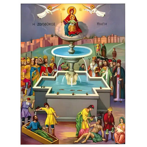 Εικόνα Ορθοδοξίας με περίγραμμα χρυσό σε ξύλο Φλαμουρίας με βάση Εικόνα ΠΑΝΑΓΙΑ ΜΕ ΧΡΙΣΤΟ, Η ΖΩΟΔΟΧΟΣ ΠΗΓΗ Χειροποίητη Ελληνορθόδοξη εικόνα του Ιησού Χριστού, Κρεμαστή πλάκα βυζαντινής τέχνης, χριστιανική τέχνη Διάσταση 15×11 cm (5,9×4,3 ίντσες) INTRAEK-337757863847