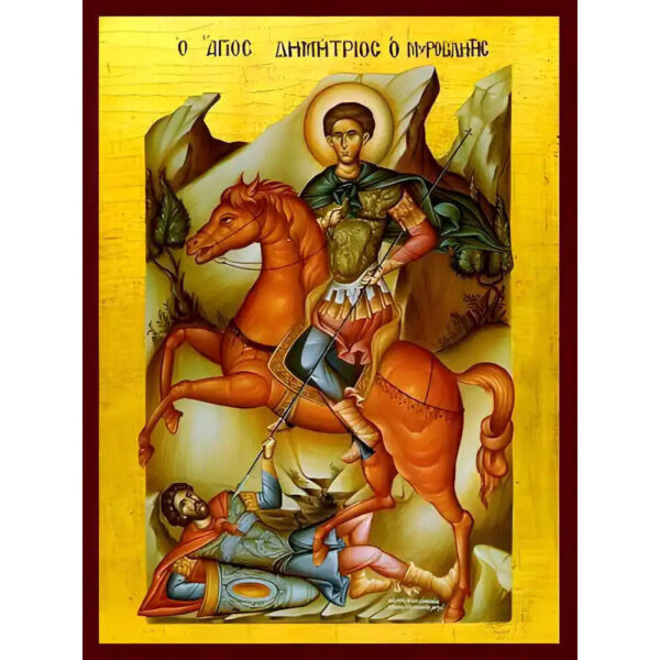 Εικόνα Ορθοδοξίας με περίγραμμα χρυσό σε ξύλο Φλαμουρίας με βάση Εικόνα ΑΓΙΟΣ ΔΗΜΗΤΡΙΟΣ Ο ΜΥΡΟΒΛΥΤΗΣ, ΕΦΙΠΠΟΣ Χειροποίητη Ελληνορθόδοξη εικόνα του Ιησού Χριστού, Κρεμαστή πλάκα βυζαντινής τέχνης, χριστιανική τέχνη Διάσταση 15×11 cm (5,9×4,3 ίντσες) INTRAEK-337757864913