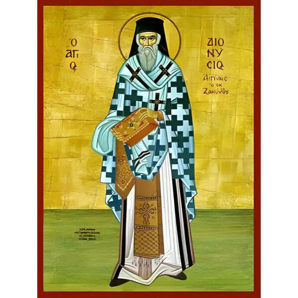 Εικόνα Ορθοδοξίας με περίγραμμα χρυσό σε ξύλο Φλαμουρίας με βάση Εικόνα ΑΓΙΟΣ ΔΙΟΝΥΣΙΟΣ Ο ΕΚ ΖΑΚΥΝΘΟΥ, ΕΠΙΣΚΟΠΟΣ ΑΙΓΙΝΗΣ, ΟΛΟΣΩΜΟΣ Χειροποίητη Ελληνορθόδοξη εικόνα του Ιησού Χριστού, Κρεμαστή πλάκα βυζαντινής τέχνης, χριστιανική τέχνη Διάσταση 15×11 cm (5,9×4,3 ίντσες) INTRAEK-337757864895