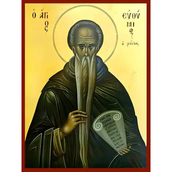 Εικόνα Ορθοδοξίας με περίγραμμα χρυσό σε ξύλο Φλαμουρίας με βάση Εικόνα ΑΓΙΟΣ ΕΥΘΥΜΙΟΣ, Ο ΜΕΓΑΣ Χειροποίητη Ελληνορθόδοξη εικόνα του Ιησού Χριστού, Κρεμαστή πλάκα βυζαντινής τέχνης, χριστιανική τέχνη Διάσταση 15×11 cm (5,9×4,3 ίντσες) INTRAEK-337757864876