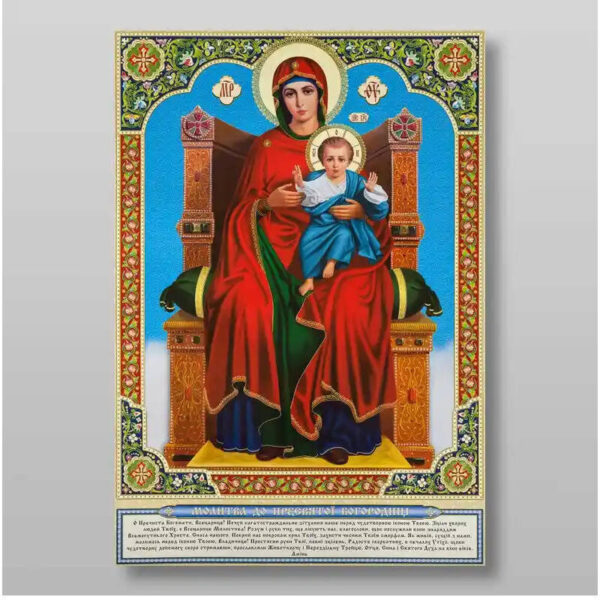Εικόνα Ορθοδοξίας με περίγραμμα χρυσό σε ξύλο Φλαμουρίας με βάση Εικόνα της Θεοτόκου της βασιλεύουσας Χειροποίητη Ελληνορθόδοξη , Κρεμαστή πλάκα βυζαντινής τέχνης, χριστιανική τέχνη Διάσταση 50×40 cm (19,7 x 15,8 ίντσες) INTRAEK-65432844