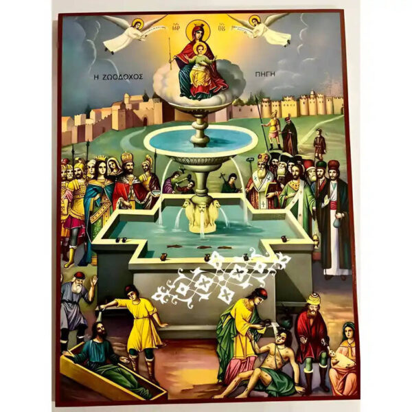 Εικόνα Ορθοδοξίας με περίγραμμα χρυσό σε ξύλο Φλαμουρίας με βάση Εικόνα Παναγία Ζωοδόχος Πηγή Χειροποίητη Ελληνορθόδοξη , Κρεμαστή πλάκα βυζαντινής τέχνης, χριστιανική τέχνη Διάσταση 45×35 cm (17,7 x 13,8 ίντσες) INTRAEK-11294671281