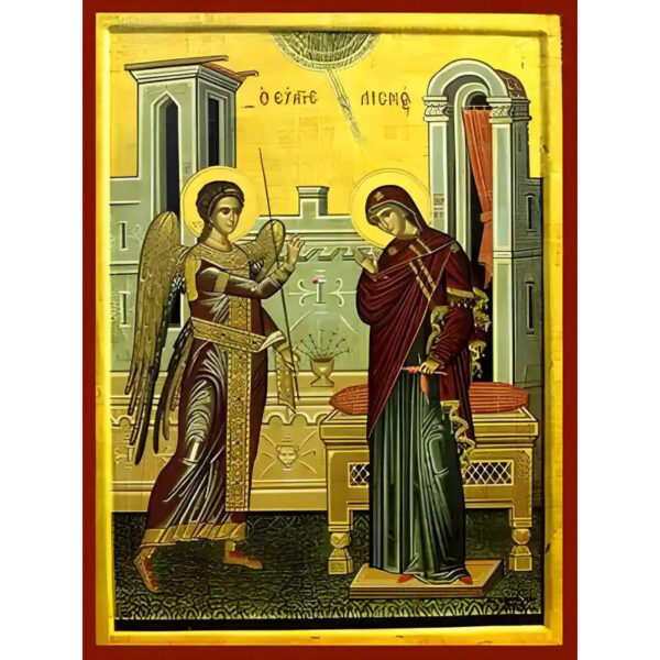Εικόνα Ορθοδοξίας με περίγραμμα χρυσό σε ξύλο Φλαμουρίας με βάση Εικόνα ΕΥΑΓΓΕΛΙΣΜΟΣ ΘΕΟΤΟΚΟΥ Χειροποίητη Ελληνορθόδοξη εικόνα του Ιησού Χριστού, Κρεμαστή πλάκα βυζαντινής τέχνης, χριστιανική τέχνη Διάσταση 15×11 cm (5,9×4,3 ίντσες) INTRAEK-337757863740
