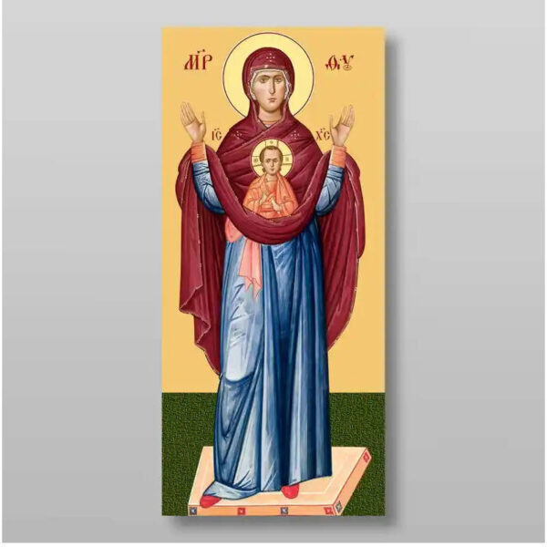 Εικόνα Ορθοδοξίας με περίγραμμα χρυσό σε ξύλο Φλαμουρίας με βάση Εικόνα της Μητέρας του Θεού, του Σημαδίου Χειροποίητη Ελληνορθόδοξη , Κρεμαστή πλάκα βυζαντινής τέχνης, χριστιανική τέχνη Διάσταση 50×40 cm (19,7 x 15,8 ίντσες) INTRAEK-65432816