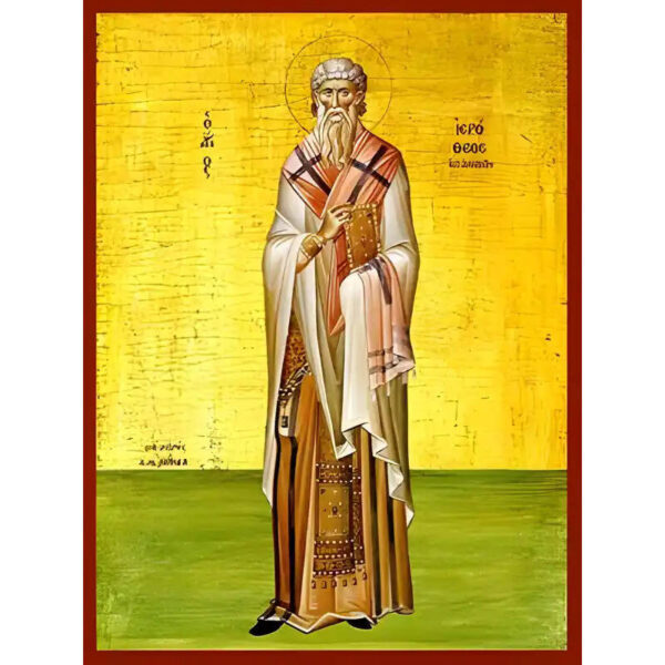 Εικόνα Ορθοδοξίας με περίγραμμα χρυσό σε ξύλο Φλαμουρίας με βάση Εικόνα ΑΓΙΟΣ ΙΕΡΟΘΕΟΣ, ΙΕΡΟΜΑΡΤΥΣ, ΕΠΙΣΚΟΠΟΣ ΑΘΗΝΩΝ, ΟΛΟΣΩΜΟΣ Χειροποίητη Ελληνορθόδοξη εικόνα του Ιησού Χριστού, Κρεμαστή πλάκα βυζαντινής τέχνης, χριστιανική τέχνη Διάσταση 15×11 cm (5,9×4,3 ίντσες) INTRAEK-337757864830
