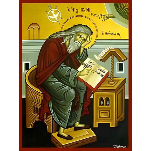 Εικόνα Ορθοδοξίας με περίγραμμα χρυσό σε ξύλο Φλαμουρίας με βάση Εικόνα ΑΓΙΟΣ ΙΣΑΑΚ Ο ΣΥΡΟΣ, ΕΠΙΣΚΟΠΟΣ ΝΙΝΕΒΗ, ΟΛΟΣΩΜΟΣ Χειροποίητη Ελληνορθόδοξη εικόνα του Ιησού Χριστού, Κρεμαστή πλάκα βυζαντινής τέχνης, χριστιανική τέχνη Διάσταση 15×11 cm (5,9×4,3 ίντσες) INTRAEK-337757864823