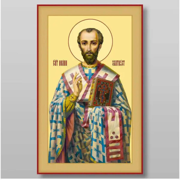 Εικόνα Ορθοδοξίας με περίγραμμα χρυσό σε ξύλο Φλαμουρίας με βάση Ιωάννης του Χρυσοστόμου ιερός αρχιεπίσκοπος, Χειροποίητη Ελληνορθόδοξη , Κρεμαστή πλάκα βυζαντινής τέχνης, χριστιανική τέχνη Διάσταση 50×40 cm (19,7 x 15,8 ίντσες) INTRAEK-65432746