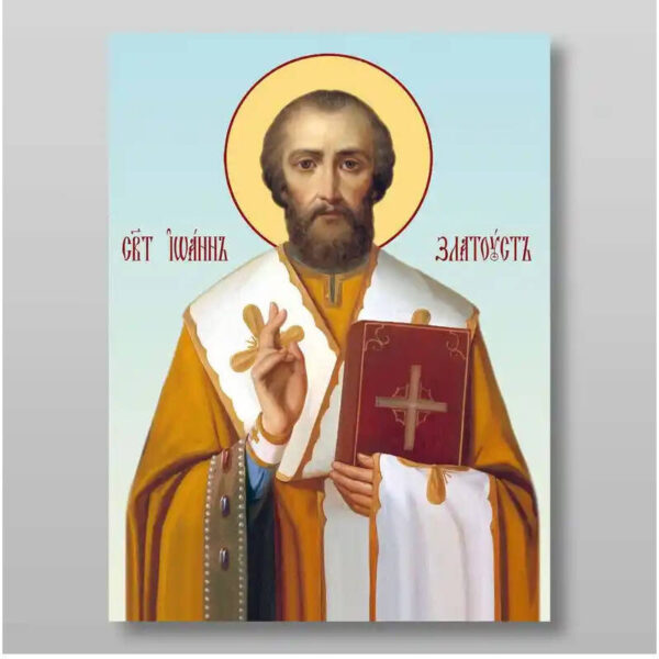 Εικόνα Ορθοδοξίας με περίγραμμα χρυσό σε ξύλο Φλαμουρίας με βάση Ιωάννης του Χρυσοστόμου ιερός αρχιεπίσκοπος, Χειροποίητη Ελληνορθόδοξη , Κρεμαστή πλάκα βυζαντινής τέχνης, χριστιανική τέχνη Διάσταση 50×40 cm (19,7 x 15,8 ίντσες) INTRAEK-65432745