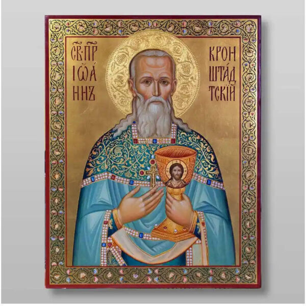 Εικόνα Ορθοδοξίας με περίγραμμα χρυσό σε ξύλο Φλαμουρίας με βάση Ιωάννης της Κρονστάνδης δίκαιος αρχιερέας, Χειροποίητη Ελληνορθόδοξη , Κρεμαστή πλάκα βυζαντινής τέχνης, χριστιανική τέχνη Διάσταση 50×40 cm (19,7 x 15,8 ίντσες) INTRAEK-65432739