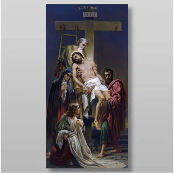 Εικόνα Ορθοδοξίας με περίγραμμα χρυσό σε ξύλο Φλαμουρίας με βάση Κάθοδος από τον Σταυρό Χειροποίητη Ελληνορθόδοξη , Κρεμαστή πλάκα βυζαντινής τέχνης, χριστιανική τέχνη Διάσταση 50×40 cm (19,7 x 15,8 ίντσες) INTRAEK-65432722