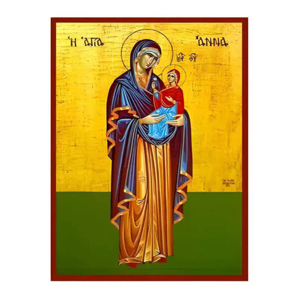 Εικόνα Ορθοδοξίας με περίγραμμα χρυσό σε ξύλο Φλαμουρίας με βάση Εικόνα Αγία Άννα με Παναγία Χειροποίητη Ελληνορθόδοξη , Κρεμαστή πλάκα βυζαντινής τέχνης, χριστιανική τέχνη Διάσταση 10×7 cm (3,9 x 2,8 ίντσες) INTRAEK-671360