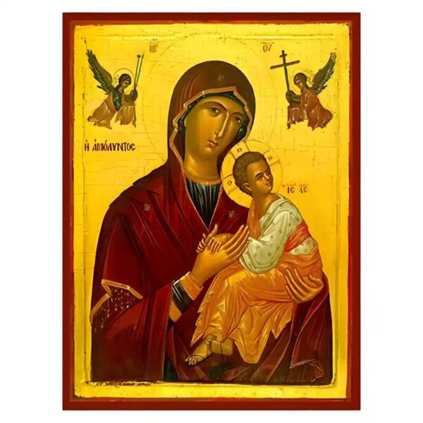 Βασικά Χαρακτηριστικά: – Σχέδιο: Κλασική βυζαντινή εικονογραφία με ζωηρό κόκκινο περίγραμμα – Υλικό: Ξύλο Μασίφ Φλαμουρία υψηλής αντοχής με προστατευτικό βερνίκι για ποιότητα που διαρκεί – Προέλευση: Χειροποίητο στην Ελλάδα – Σκοπός: Ιδανικό για γωνιές προσευχής, εκκλησίες, διακόσμηση σπιτιού ή ως δώρο με νόημα Διαθέσιμα μεγέθη: 10×7 cm (3,9 x 2,8 ίντσες) 15×11 cm (5,9 x 4,3 ίντσες) 21×15 cm (8,3 x 5,9 ίντσες) 26×20 cm (10,2 x 7,9 ίντσες) 40×30 cm (15,8 x 11,8 ίντσες) 45×35 cm (17,7 x 13,8 ίντσες) 50×40 cm (19,7 x 15,8 ίντσες)► Εικόνα της Παναγίας, ξύλινη. Χειροποίητη ξύλινη εικόνα, ειδικής επεξεργασίας σε σκληρό Φλαμουριά Ξύλο Εικόνα Ορθόδοξης τέχνης, σκαλισμένη ή τυπωμένη σε ξύλο φλαμουριάς υψηλής ποιότητας. Η φυσική απαλότητα και ομοιομορφία του ξύλου τονίζει κάθε λεπτομέρεια του εικονίσματος, αναδεικνύοντας τη βαθιά πνευματικότητα και την ιερότητα της παράδοσης. Ιδανική για οικιακό εικονοστάσι, δώρο βάπτισης, γάμου ή αφιέρωμα σε ναό. Το ξύλο έχει υποστεί ειδική επεξεργασία για αντοχή και αισθητική αρμονία, κρατώντας ζωντανά τα χρώματα και τη μορφή του προσώπου του Αγίου. με ανεξίτηλα χρώματα σε λεπτό καμβά.