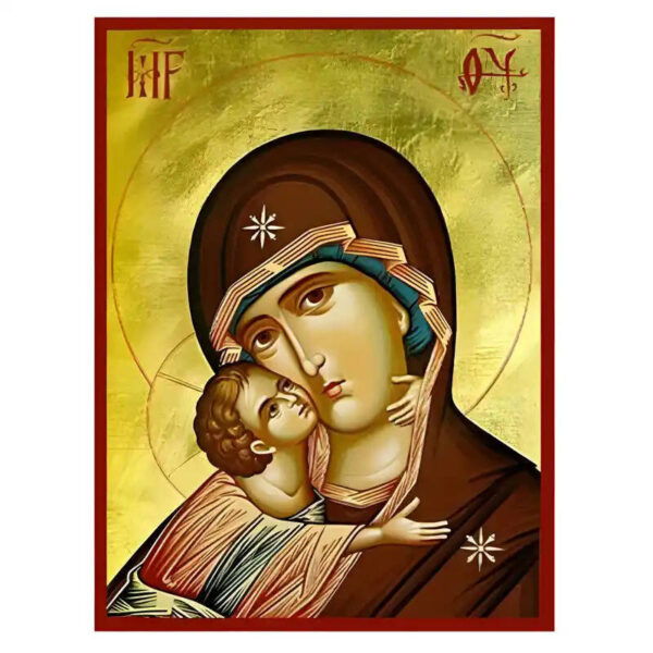 Βασικά Χαρακτηριστικά: – Σχέδιο: Κλασική βυζαντινή εικονογραφία με ζωηρό κόκκινο περίγραμμα – Υλικό: Ξύλο Μασίφ Φλαμουρία υψηλής αντοχής με προστατευτικό βερνίκι για ποιότητα που διαρκεί – Προέλευση: Χειροποίητο στην Ελλάδα – Σκοπός: Ιδανικό για γωνιές προσευχής, εκκλησίες, διακόσμηση σπιτιού ή ως δώρο με νόημα Διαθέσιμα μεγέθη: 10×7 cm (3,9 x 2,8 ίντσες) 15×11 cm (5,9 x 4,3 ίντσες) 21×15 cm (8,3 x 5,9 ίντσες) 26×20 cm (10,2 x 7,9 ίντσες) 40×30 cm (15,8 x 11,8 ίντσες) 45×35 cm (17,7 x 13,8 ίντσες) 50×40 cm (19,7 x 15,8 ίντσες)► Εικόνα της Παναγίας της Γλυκοφιλούσας, ξύλινη. Χειροποίητη ξύλινη εικόνα, ειδικής επεξεργασίας σε σκληρό Φλαμουριά Ξύλο Εικόνα Ορθόδοξης τέχνης, σκαλισμένη ή τυπωμένη σε ξύλο φλαμουριάς υψηλής ποιότητας. Η φυσική απαλότητα και ομοιομορφία του ξύλου τονίζει κάθε λεπτομέρεια του εικονίσματος, αναδεικνύοντας τη βαθιά πνευματικότητα και την ιερότητα της παράδοσης. Ιδανική για οικιακό εικονοστάσι, δώρο βάπτισης, γάμου ή αφιέρωμα σε ναό. Το ξύλο έχει υποστεί ειδική επεξεργασία για αντοχή και αισθητική αρμονία, κρατώντας ζωντανά τα χρώματα και τη μορφή του προσώπου του Αγίου. με ανεξίτηλα χρώματα σε λεπτό καμβά.