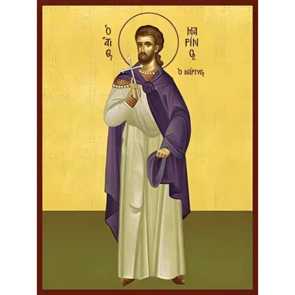 Εικόνα Ορθοδοξίας με περίγραμμα χρυσό σε ξύλο Φλαμουρίας με βάση Εικόνα ΑΓΙΟΣ ΜΑΡΙΝΟΣ ΚΑΙΣΑΡΕΙΑΣ, ΜΑΡΤΥΣ Χειροποίητη Ελληνορθόδοξη εικόνα του Ιησού Χριστού, Κρεμαστή πλάκα βυζαντινής τέχνης, χριστιανική τέχνη Διάσταση 15×11 cm (5,9×4,3 ίντσες) INTRAEK-337757864731