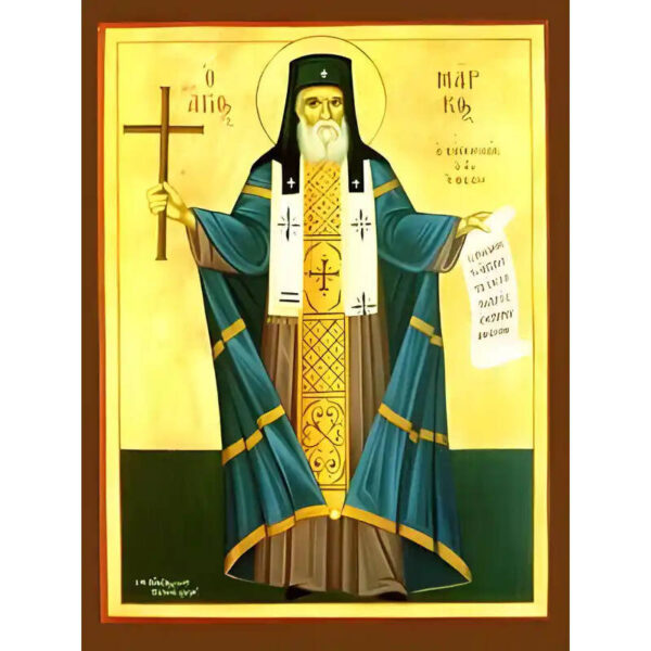 Εικόνα Ορθοδοξίας με περίγραμμα χρυσό σε ξύλο Φλαμουρίας με βάση Εικόνα ΑΓΙΟΣ ΜΑΡΚΟΣ Ο ΕΥΓΕΝΙΚΟΣ, ΕΠΙΣΚΟΠΟΣ ΕΦΕΣΣΟΥ, ΟΛΟΣΩΜΟΣ Χειροποίητη Ελληνορθόδοξη εικόνα του Ιησού Χριστού, Κρεμαστή πλάκα βυζαντινής τέχνης, χριστιανική τέχνη Διάσταση 15×11 cm (5,9×4,3 ίντσες) INTRAEK-337757864730