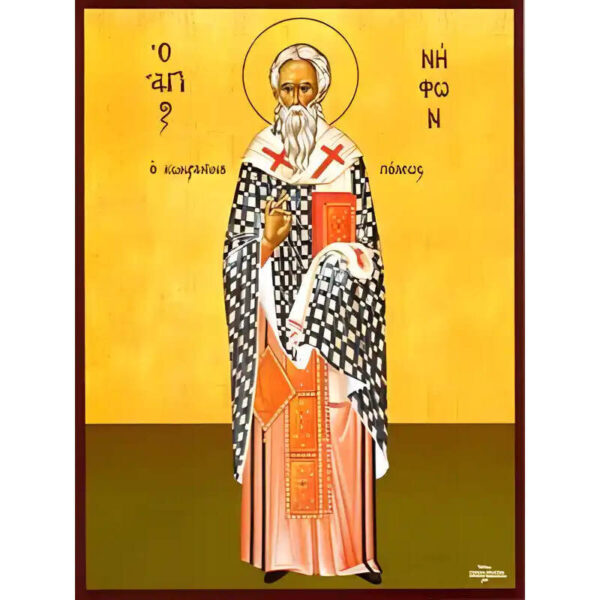 Εικόνα Ορθοδοξίας με περίγραμμα χρυσό σε ξύλο Φλαμουρίας με βάση Εικόνα ΑΓΙΟΣ ΝΗΦΩΝ, ΠΑΤΡΙΑΡΧΗΣ ΚΩΝΣΤΑΝΤΙΝΟΥΠΟΛΕΩΣ, ΟΛΟΣΩΜΟΣ Χειροποίητη Ελληνορθόδοξη εικόνα του Ιησού Χριστού, Κρεμαστή πλάκα βυζαντινής τέχνης, χριστιανική τέχνη Διάσταση 15×11 cm (5,9×4,3 ίντσες) INTRAEK-337757864694