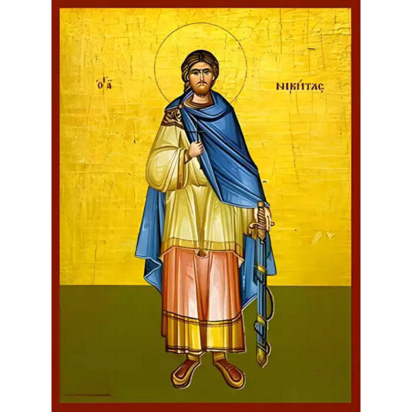 Εικόνα Ορθοδοξίας με περίγραμμα χρυσό σε ξύλο Φλαμουρίας με βάση Εικόνα ΑΓΙΟΣ ΝΙΚΗΤΑΣ, Ο ΜΕΓΑΛΟΜΑΡΤΥΣ, ΟΛΟΣΩΜΟΣ Χειροποίητη Ελληνορθόδοξη εικόνα του Ιησού Χριστού, Κρεμαστή πλάκα βυζαντινής τέχνης, χριστιανική τέχνη Διάσταση 15×11 cm (5,9×4,3 ίντσες) INTRAEK-337757864691