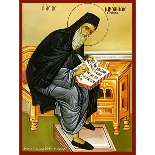 Εικόνα Ορθοδοξίας με περίγραμμα χρυσό σε ξύλο Φλαμουρίας με βάση Εικόνα ΑΓΙΟΣ ΝΙΚΟΔΗΜΟΣ, Ο ΑΓΙΟΡΕΙΤΗΣ, ΟΛΟΣΩΜΟΣ Χειροποίητη Ελληνορθόδοξη εικόνα του Ιησού Χριστού, Κρεμαστή πλάκα βυζαντινής τέχνης, χριστιανική τέχνη Διάσταση 15×11 cm (5,9×4,3 ίντσες) INTRAEK-337757864687